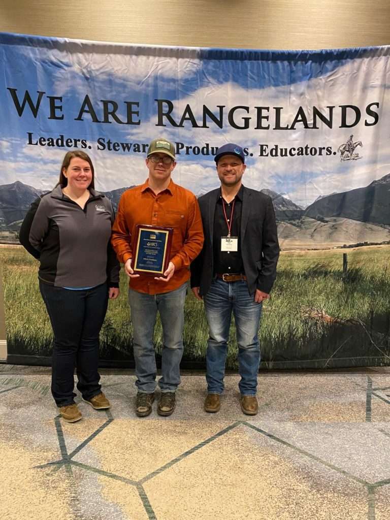 Mitch Faulkner, center, accepts the Rangeland Management Specialist of the Year award at the Society for Range Management Conference in Denver. Photo: Jeremy Maestas, NRCS/SGI.