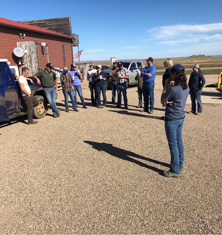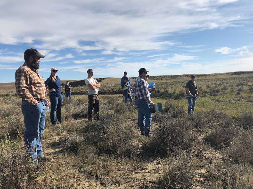 USDA-NRCS, BLM, and others gather during a field tour and mesic restoration workshop sponsored by NRCS South Dakota and Montana. Photo: Jeremy Maestas, NRCS/SGI.