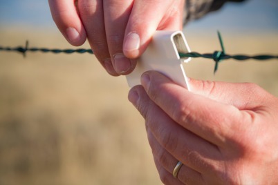 (Photo of clipping on a white vinyl fence marker: Credit Jeremy Roberts, Conservation Media)