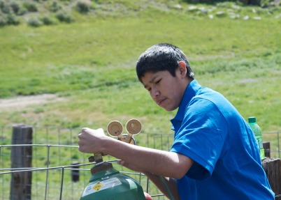 Down in a far draw by a livestock watering tank, the Little Bighorn FFA group wrestled a heavy cutting torch and press from the back of a pickup truck. Livestock tanks can be deadly for heavy birds like sage grouse that fly in for a drink and can’t get out the slick sides. A sturdy piece of metal grate bent to specifications and installed in a tank gives birds traction to climb out.