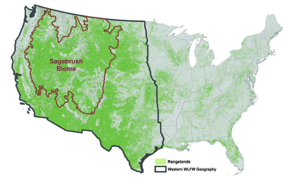 This biome-level approach is necessary because so much of these landscapes are privately owned. Nearly two-thirds of the working rangelands west of the Mississippi River are privately owned, encompassing productive grass and shrublands that are home to more than 350 plant and animal species. These working lands include the sweeping Great Plains grasslands and the iconic sagebrush sea, the largest single habitat type in North America.